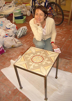 « Je récupère des carreaux de ciment dans les containers de travaux des rues de Barcelone. Après les avoir nettoyé et restauré, j’en fais des tables, des consoles, des cadres, des dessous de  plat,  bouteilles  et  autres  objets  et  cela  selon  les  designs/quantités  trouvés.  L’idée  est  de rendre ce carreau de ciment fonctionnel à nouveau, lui redonner une nouvelle vieJe m’adresse surtout à l’étranger amoureux de Barcelone et de son architecture, qui ne peux pas imaginer quitter cette si belle ville sans rapporter chez lui un petit morceau de la ville ; à la personne consciente que  ses proches ont tout ou presque et donc  souhaite offrir quelque chose de différent, quelque chose qui ait une âme. »